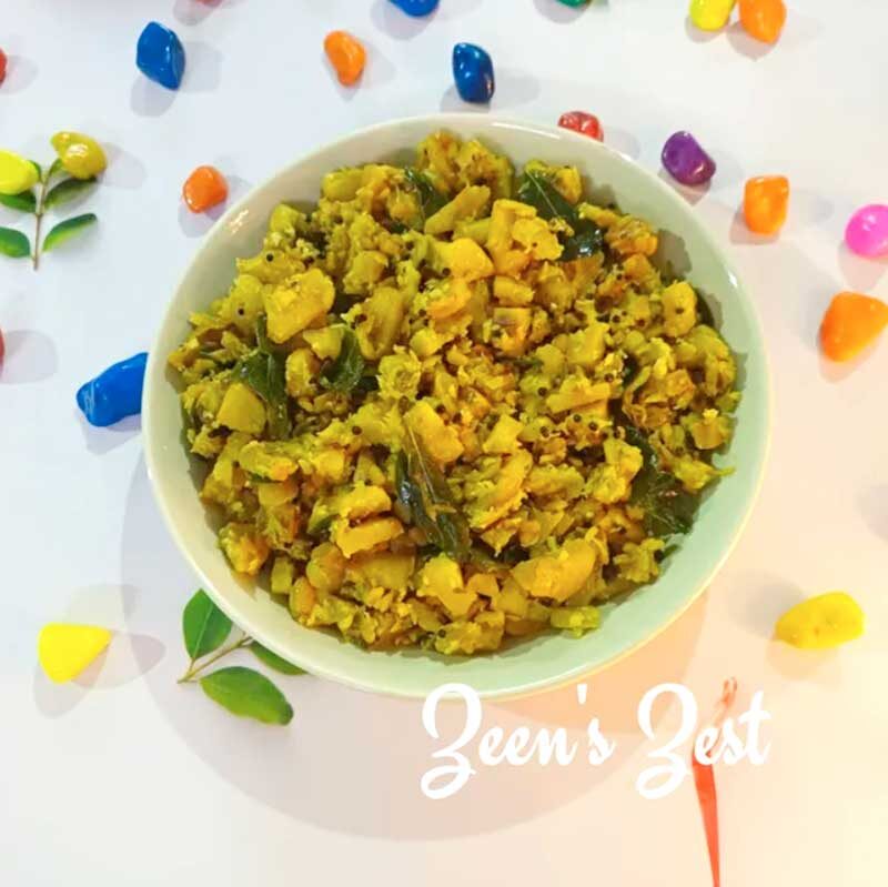 ✔️ Raw Banana Thoran Торан, или Уппери — это разновидность сухого карри с кокосом из Северной Кералы, традиционное блюдо южноиндийской кухни. Его часто подают с рисом и роти. Торан — это прекрасное сочетание вкусов и цветов, популярный и полезный гарнир, который подают с отварным рисом и роти, его можно приготовить с различными овощами, и им можно наслаждаться в любой день. В некоторых частях Кералы его называют уппери. Простой, но ароматный и полезный гарнир. ⏳ Время приготовления: 18-20 мин. 👪 4-5 порций 📜 Что понадобится: 3 крупных свежих банана (нарезанные на очень мелкие кубики) 2 ст. л. кокосового масла 1 ч. л. семян черной горчицы 1 ч. л. белого маша (урад дала) 2 зеленых перца чили, мелко нарезанных 1 луковица, мелко нарезанная 10-12 листьев карри 1/2 ч. л. куркумы 1 ч. л. соли 2-3 ст. л. свежего натертого кокоса ♨️ Как приготовить: Разогрейте кокосовое масло в сковороде. Добавьте семена горчицы и листья карри. Дайте им потрещать. Добавьте урад дал и обжаривайте до золотист