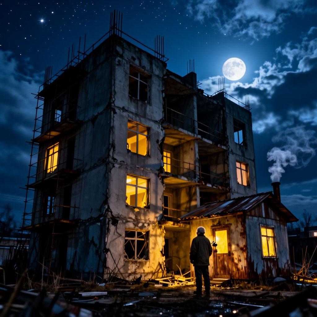 В 1983 году на окраине Челябинска стояла заброшенная стройка многоэтажного дома — бетонный скелет, облепленный паутиной трещин, с зияющими пустотами окон. Её охранял Николай Семёнович, пожилой сторож с седыми вихрами и трубкой, которую он курил даже в мороз. Местные поговаривали, что он знает о стройке больше, чем официальные документы, — будто бы под фундаментом таится старый бункер времён войны, но Николай лишь усмехался в усы.
