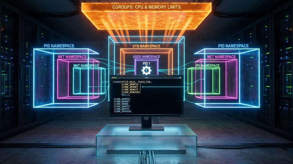 Новый процесс оказывается в изолированной среде ещё до того, как в нём выполнится первая пользовательская инструкция. Каждый из этих флагов - отдельный мир, и каждый заслуживает детального разбора.