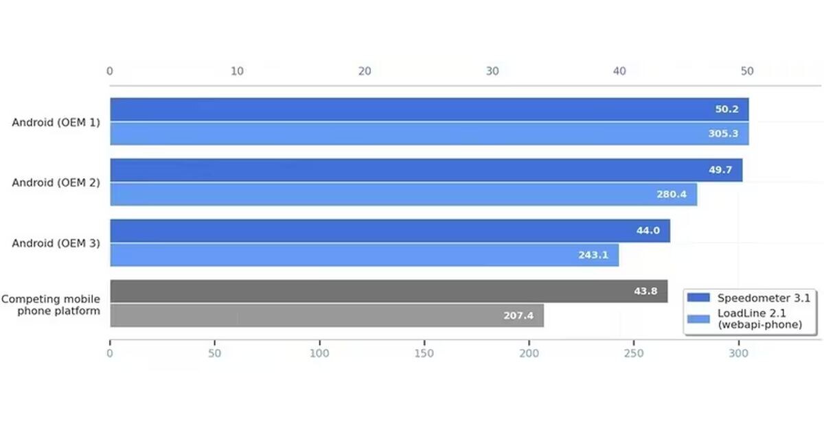 Speedometer 3.1 оценивает, насколько быстро браузер справляется с комплексными ежедневными задачами, такими как работа с Facebook, Gmail и Google Docs. LoadLine, созданный командой Chrome и Android совместно с производителями процессоров и смартфонов, симулирует полную загрузку сайта после перехода по ссылке, используя популярные реальные ресурсы. Ещё по теме: В свежих тестах три неизвестных Android-флагмана показали до 47 % превосходства в LoadLine над iPhone с iOS. Средний балл Speedometer 3.1 на Android составил 48,2 против 43,8 у конкурента, а в LoadLine — 276,3 против 207,4. Вероятно, речь идёт о Pixel 10 Pro, Galaxy S26 Ultra и Xiaomi 16. ⚡Подписывайтесь на канал itzine и канал подкаста ForGeeks в Telegram! Там самые свежие новости про технологии, гаджеты и космос. Google объясняет успех глубокой вертикальной оптимизацией — тесной интеграцией аппаратного обеспечения, Android и движка Chrome. Для достижения максимальной производительности компания рекомендует производителям тестир