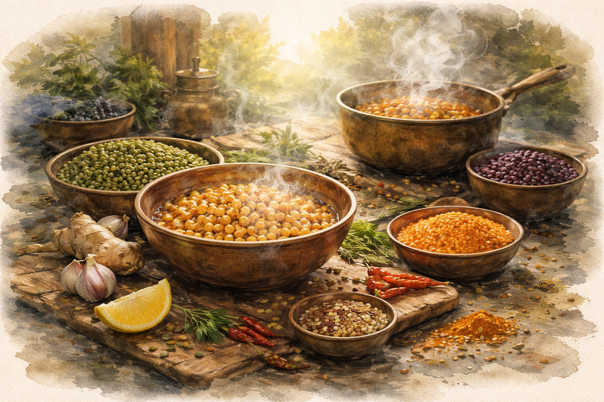 Со стола они редко уходят бесследно. Вчера — тарелка фасоли «ради белка», сегодня — тяжесть, газообразование и мысль: «Мне бобовые не подходят». На лекциях по аюрведе меня часто спрашивают: «Роман, так как же быть? Одни пишут, что бобовые — суперполезны, другие — что от них одни проблемы с животом». Правда в том, что бобовые — не враги и не спасители. Это сильный продукт, который требует к себе уважения. Если готовить их «на скорую руку», тело отвечает дискомфортом. Если соблюдать несколько простых правил, бобовые становятся понятным и вполне дружелюбным источником растительного белка и клетчатки. С точки зрения аюрведы есть несколько причин, почему бобовые так часто дают вздутие и тяжесть: Это не значит, что бобовые плохие. Это значит, что без подготовки и без правильной «компании» на тарелке они ведут себя грубо. То, что знали наши бабушки и что аюрведа повторяет много веков: бобовые нельзя просто промыть и тут же сварить. Им нужно время. В аюрведической кухне бобовые почти никогд