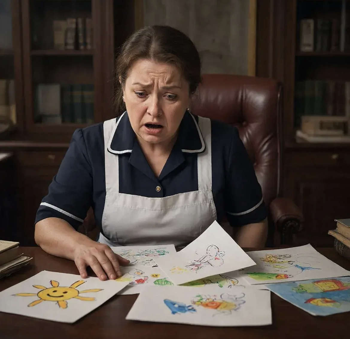 Когда Ольга подошла к массивному столу из тёмного дерева, её взгляд случайно упал на стопку документов, небрежно сдвинутую к краю. Среди официальных бумаг и папок лежали рисунки — яркие, немного наивные, с неровными линиями и смешными человечками. Ольга замерла: это были рисунки её сына. Она узнала их сразу — вот домик с трубой, вот солнце с улыбкой, а вот самолётик, который Дима нарисовал на прошлой неделе. Сердце забилось быстрее. Как они оказались у босса? Дима никогда не встречался с Андреем Викторовичем, да и сама Ольга никому не показывала эти рисунки.