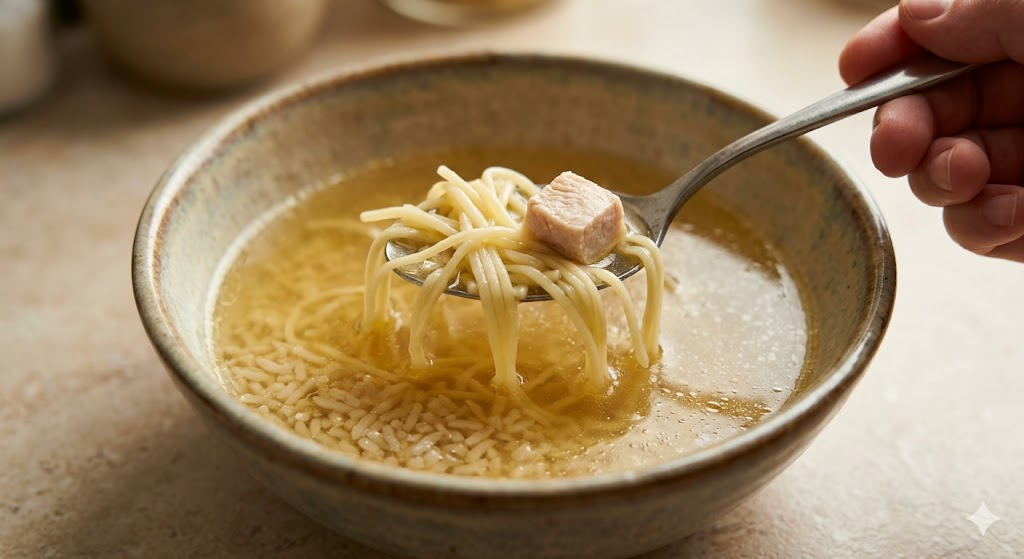 Девочки, признавайтесь: было такое? Хочется приготовить тот самый супчик, как у бабушки в деревне — чтобы бульон был прозрачным, как слеза, лапшичка тонкая и упругая, а аромат стоял на весь дом. А на выходе получается мутная жидкость, в которой плавает размякшее тесто, больше похожее на клейстер. Я долго билась над этим супом, пока не поняла: лапша не терпит спешки, а бульон — бурного кипения. Оказалось, что секрет идеального супа кроется не в кастрюле, а в… обычной сухой сковороде и одном «золотом» правиле замеса. Сегодня я научу вас готовить ту самую домашнюю лапшу, за которую домашние будут целовать вам руки. Это самая большая ошибка! Если бульон активно кипит и бурлит, жир смешивается с водой, образуя эмульсию. В итоге вы получаете ту самую мутную «серую» жижу. Запомните правило: Бульон должен не кипеть, а «томиться». Один пузырек в пару секунд — вот идеальный темп для прозрачности. 1. Луковая шелуха для цвета. Чтобы бульон был не бледным, а аппетитно-золотистым, я всегда кладу одн