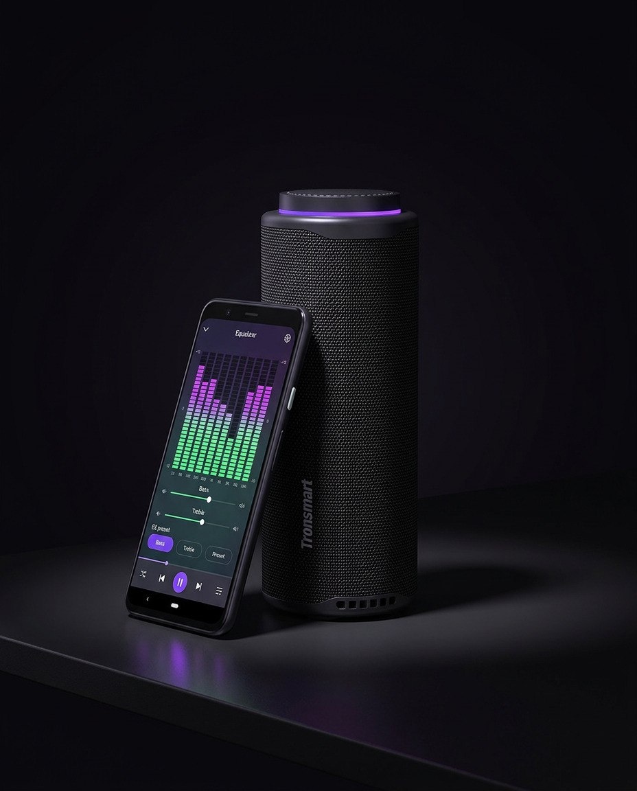 Пять пресетов эквалайзера в приложении, и каждый жанр звучит так, будто колонку собирали под него 🎛 Tronsmart T8: 40 Вт, IPX7, 18 ч