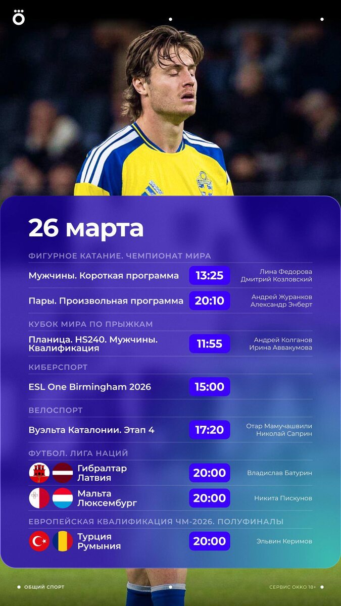 Европейская квалификация ЧМ-2026, баскет, велоспорт, ЧМ по фигурке и киберспорт — вот такой крутой четверг нас ждет