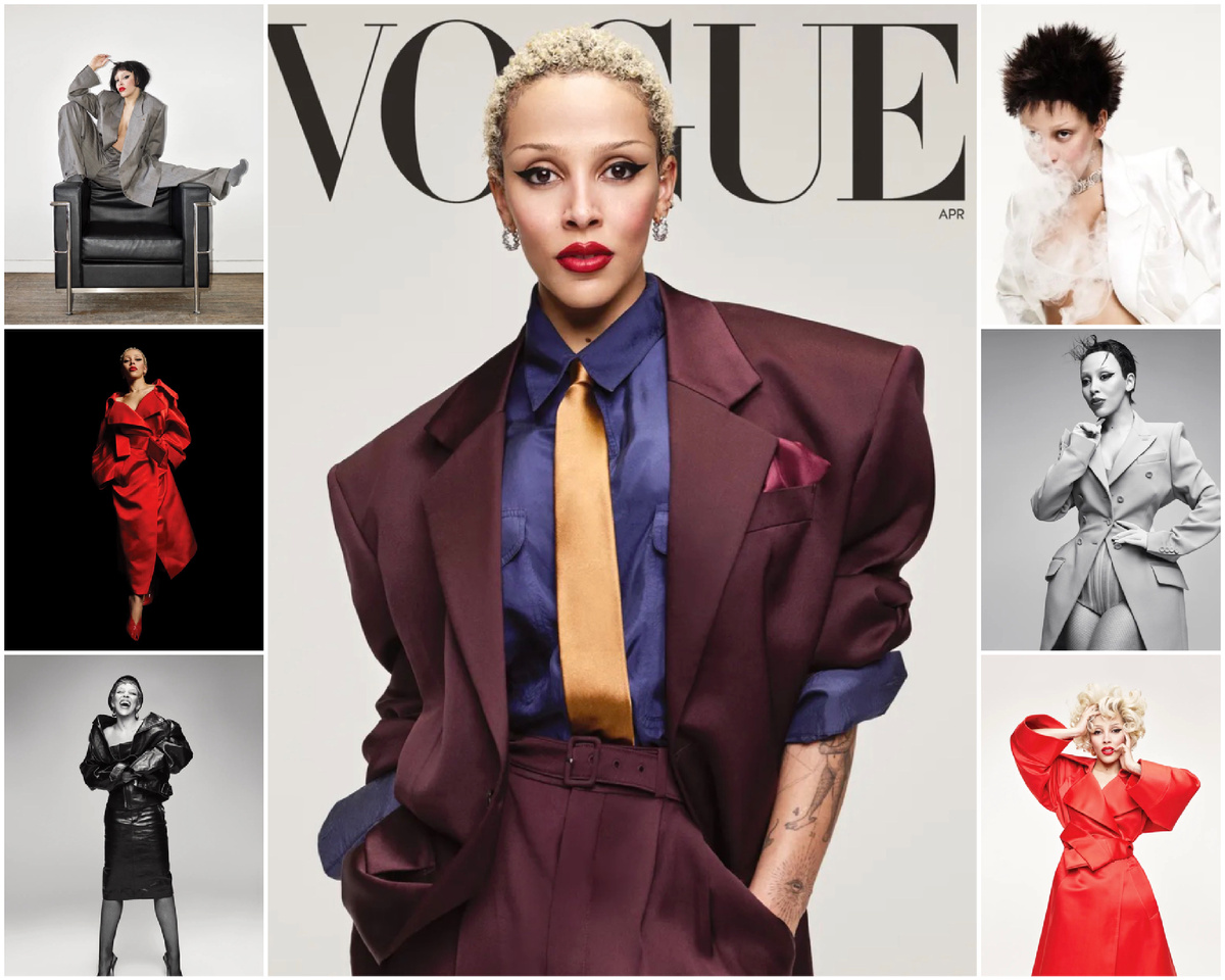 «В таких нарядах я чувствую себя в большей безопасности», — признается артистка, делая выбор в пользу едва уловимых цветовых акцентов и сложного кроя. Для нее это не просто смена гардероба, а эволюция архетипов: «Это так же круто, как когда я носила кошачьи ушки, сапоги для танцев и всякие безумные, глупые, причудливые вещи». Говоря о своей первой обложке Vogue, Доджа отметила, что появление без привычных париков, с собственными волосами стало для нее «очень, очень освобождающим» моментом. И вот — новая обложка, новый виток.