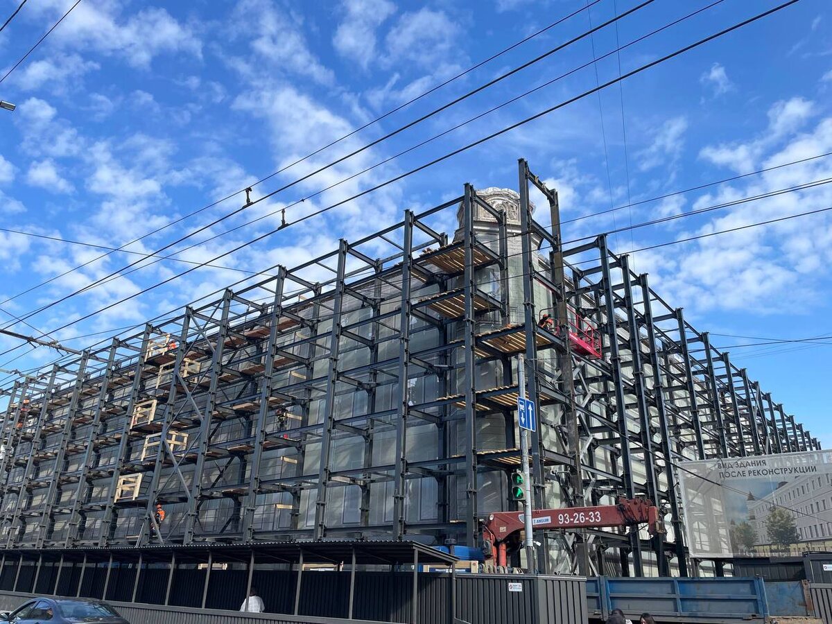 На гостинице «Россия» сомкнули металлический каркас