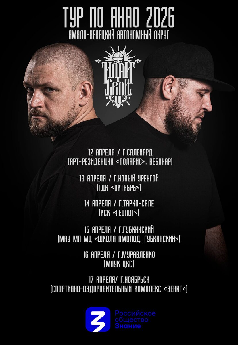 ❗ (Ямало-Ненецкий автономный округ) Дуэт I.L.A.Y. & С.В.О.Й едет в Сибирь❄️ • 12 апреля / г.Салехард Арт-Резиденция «Полярис», ул.Чубынина, д.17 Запись на мероприятие: ТУТ Вход бесплатный, начало в 13:30 • 13 апреля / г.Новый Уренгой ГДК «Октябрь», Ленинградский пр-кт., д.9 Запись на концерт: ТУТ Вход бесплатный, начало в 17:00 • 14 апреля / г.Тарко-Сале КСК «Геолог», ул.Республики, д.7 Запись на концерт: ТУТ Вход бесплатный, начало в 17:30 • 15 апреля / г.Губкинский МАУ МП МЦ «Школа Ямолод», 3 мкр., д.11 Запись на концерт: ТУТ Вход бесплатный, начало в 17:00 • 16 апреля / г.Муравленко МАУК ЦКС, ул.Ленина, д.121 Запись на концерт: ТУТ Вход бесплатный, начало в 16:00 • 17 апреля / г.Ноябрьск Спортивно-оздоровительный комплекс «Зенит», мкр.Вынгапуровский, ул.Ленина, д.22A Запись на мероприятие: ТУТ Вход бесплатный, начало в 17:00 ❗️На все мероприятия и концерты нужно пройти регистрацию по ссылке. Она указана к каждой дате. Для поддержки музыкантов: Сбер 2202 2080 4904 4606 Ждем