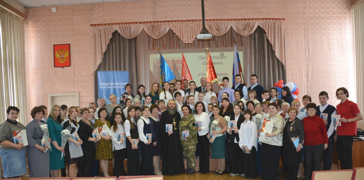В школе № 4 города Мценска провели презентацию сборника исследовательских и творческих работ школьников города Мценска «Чтобы знали и помнили», изданного на средства профсоюзного гранта Профсоюза работников образования Орловской области, а также при финансовой помощи благочинного церквей Мценского округа, почетного гражданина города Мценска, настоятеля Свято -Троицкого храма, протоиерея Владимира Герченова. Разработчиком проекта и наставником в его реализации стала заместитель председателя совета ветеранов войны, труда, вооруженных сил и правоохранительных органов Тамара Ширяева, а руководителем проекта - координатор штаба по сбору и отправке гуманитарной помощи для бойцов СВО при администрации города Мценска Нина Гагарина. На мероприятии присутствовали представители администрации города, священники Свято-Троицкого храма, педагоги, ученики школ города Мценска, родственники участников СВО, «серебряные» волонтеры. По словам ведущих, в сборнике представлено 45 детских работ: исследова