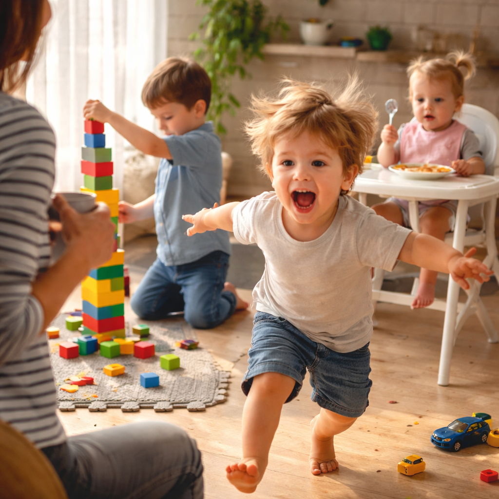 Дело было так. Утро. Я на кухне, Даша в стульчике философски разглядывает ложку, Максим строит башню века, а Миша… Миша решил, что он — ураган. Настоящий. С криками, прыжками и внезапными «хочу сейчас!». И вот я стою после очередного «падения века», и понимаю: нам срочно нужен план. Не просто «пережить», а научиться жить с этим вихрем эмоций. В тот же вечер, уже с чаем (остывшим, конечно), я нашла статью про развитие самоконтроля у трёхлеток. Прочитала. Перевела. И, честно, захотелось обнять автора. На следующий день мы начали с простого. Пузырей. Вы когда-нибудь просили ребёнка не лопать пузыри? Это как предложить коту игнорировать ёлку. Но Миша старался. Сжимал кулачки, подпрыгивал, шёл медленно, как маленький ниндзя… и иногда срывался. И это было нормально. Потом был «Стоп-танец». Музыка — стоп — замерли. Максим хохотал, Миша злился, Даша хлопала. А я вдруг увидела: он учится останавливаться. Сам. И в какой-то момент, среди этого хаоса, случилось тихое чудо. Миша замер по сигналу.