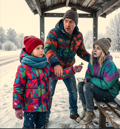 — Спасибо, — она сглотнула, утирая лицо ледяным запястьем. — Но маму на остановке не находят. Иди к папе.