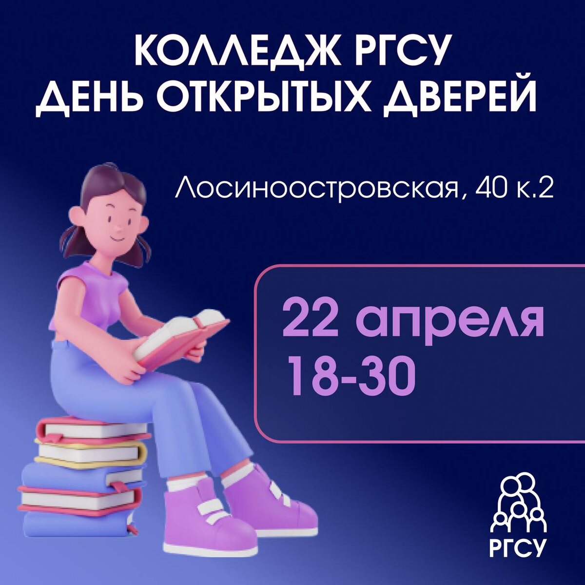 Уважаемые абитуриенты и их родители! Рады пригласить вас на День открытых дверей в Колледже РГСУ 22 апреля в 18:30! На мероприятии вы сможете: — Получить актуальную информацию о наших специальностях, условиях поступления и перспективах трудоустройства; — Узнать о стипендиях, грантах и других мерах поддержки студентов; — Задать все интересующие вопросы и получить консультации администрации и действующих преподавателей профессиональных дисциплин; — Увидеть колледж и общежитие своими глазами 📍Мероприятие пройдет по адресу: г. Москва, ул. Лосиноостровская, д.40, корп.2, актовый зал (м. Бульвар Рокоссовского или МЦК Белокаменная) 👉Нужна регистрация 🪪 У нас пропускная система, с собой берите паспорт Будем рады видеть вас! 💙
