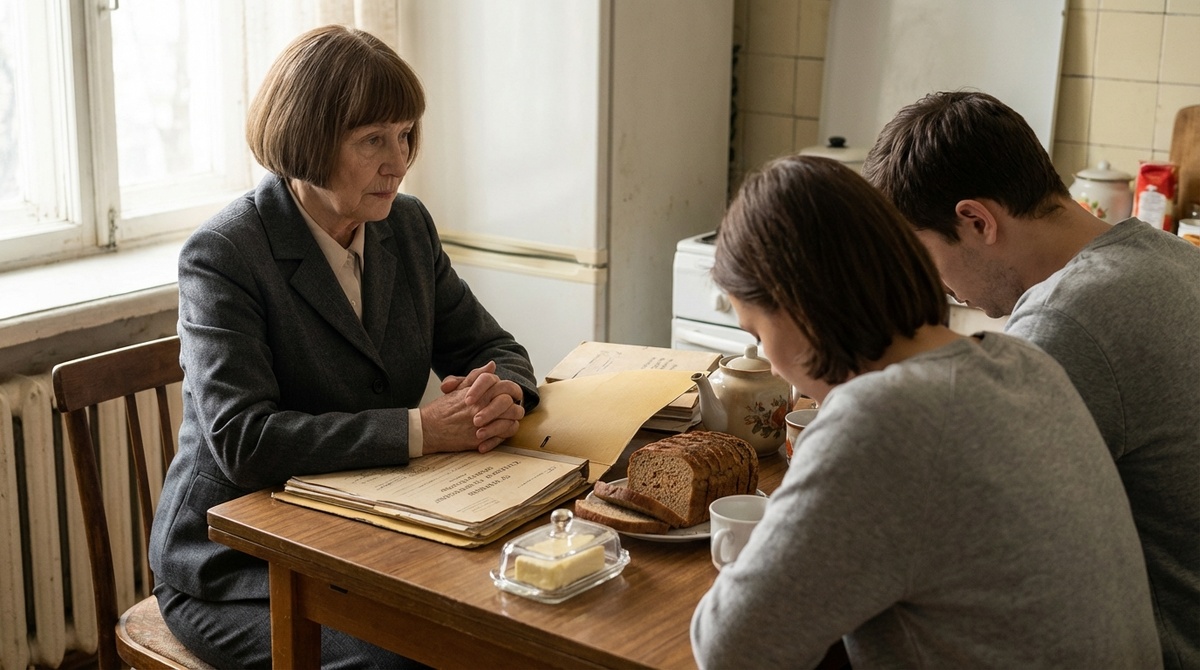 Я услышала этот разговор ночью, через тонкую стенку кухни. «Мам, бабушке восемьдесят четыре. Ей там будет лучше. Присмотр, питание, врачи». Утром бабушка вышла к завтраку раньше всех. Поставила на стол папку, раскрыла её и сказала спокойно: «Эта квартира моя. И если кто-то сегодня куда-то переезжает, это не я».