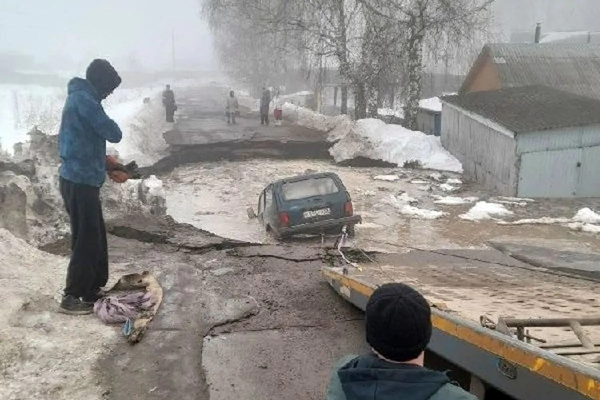 В Башкирии карстовый провал на дороге утянул за собой внедорожник