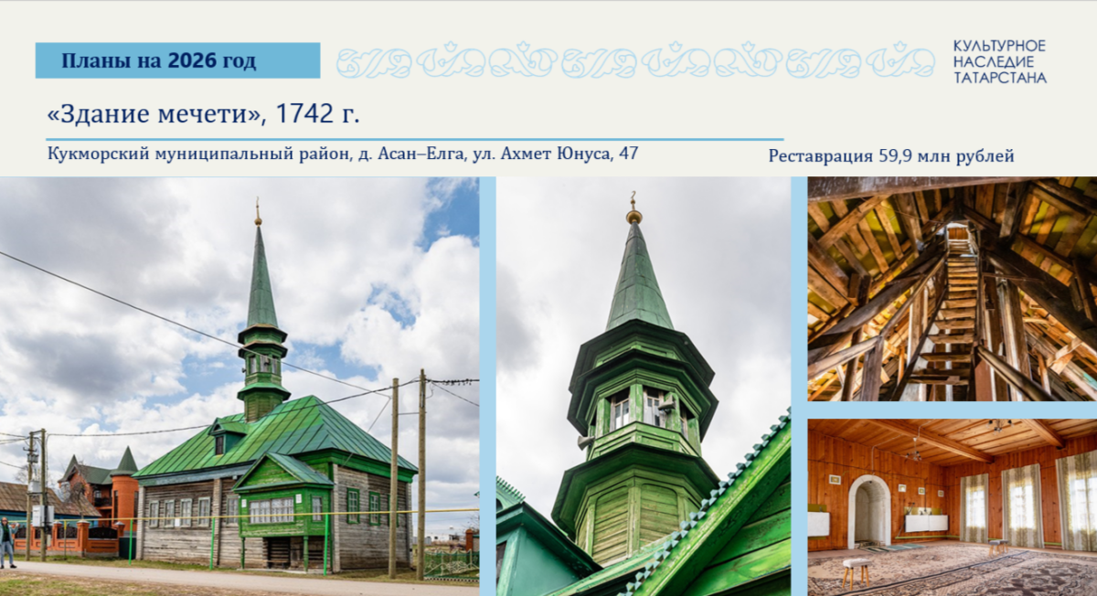 В Татарстане в 2026 году ведется реставрация и сохранение 66 объектов культурного наследия. Как отметил председатель профильного комитета Иван Гущин, это рекордный показатель для республики. В рамках программы продолжается комплексная работа по восстановлению исторических зданий и проведению противоаварийных мероприятий. Особое внимание уделяется памятникам деревянного зодчества, которые требуют бережного подхода и своевременного ремонта. На обновление десяти ключевых объектов из федерального и республиканского бюджетов направлено около 1,8 млрд рублей. Работы ведутся как на государственных и частных зданиях, так и на религиозных объектах. Среди значимых проектов — реставрация мечети 1742 года в деревне Асан-Елга Кукморского района, Казанско-Богородицкой церкви в Буинском районе, здания Губкома РКП(б) в Казани и исторического Дома с лавками Каменева – Крупенниковых – Чернояровых на улице Кремлевской. Также продолжаются работы на здании Главпочтамта, Дворце пионеров в Казани и гостинице