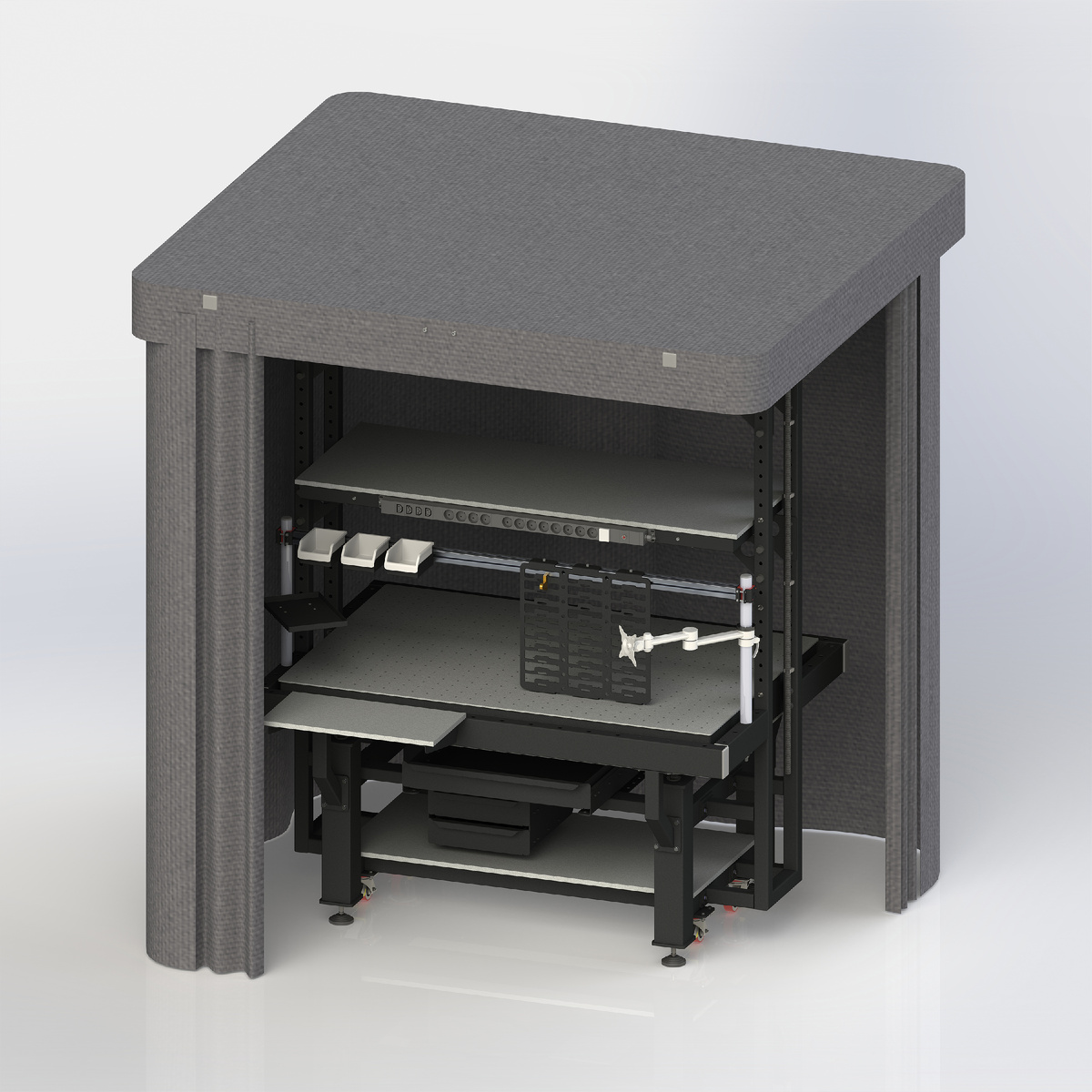 Представляем вашему вниманию новую разработку нашей компании – Рабочее место на основе оптического стола с системой хранения и защиты (вставить ссылку). Данная конструкция сразу включает в себя оптическую плиту, специализированную опору, стеллажную систему, ящики и лотки, блоки розеток, систему освещения, светозащитные или лазерные шторы, разнообразные держатели и т.д. Это позволяет эффективно, компактно и безопасно организовать рабочее место. В качестве оптической столешницы могут быть использованы различные типы плит, включая сотовые металлические (магнитные и немагнитные), а также каменные и алюминиевые поверхности, обеспечивающие необходимую плоскостность, жёсткость и устойчивость к внешним вибрациям. Тип оптической плиты можно выбрать в соответствующем разделе сайта.