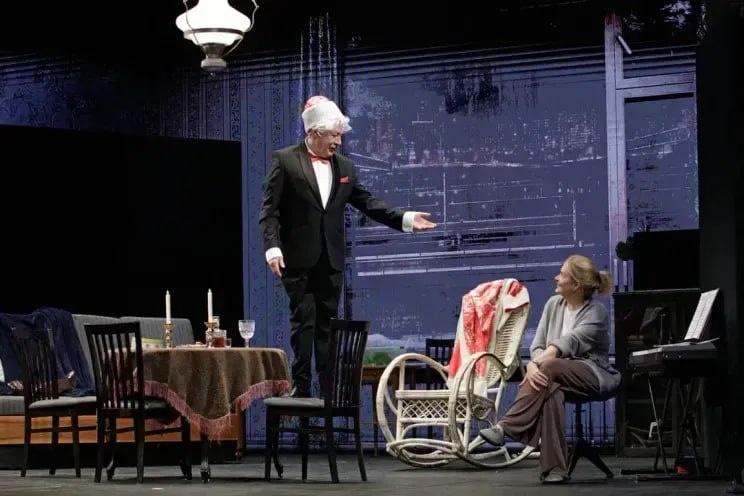 Для 62-летнего актёра она стала первой после выхода из колонии, где он отбывал срок за смертельное ДТП. Постановка с Ефремовым собрала почти полный зал. А её режиссёр Никита Михалков рассказал Владимиру Путину, что цена билета у перекупщиков доходила до 200 тысяч рублей. И пригласил президента бесплатно оценить игру актёра. Фото, видео: театр "Мастерская "12", alena_babenko/Telegram Spletnik