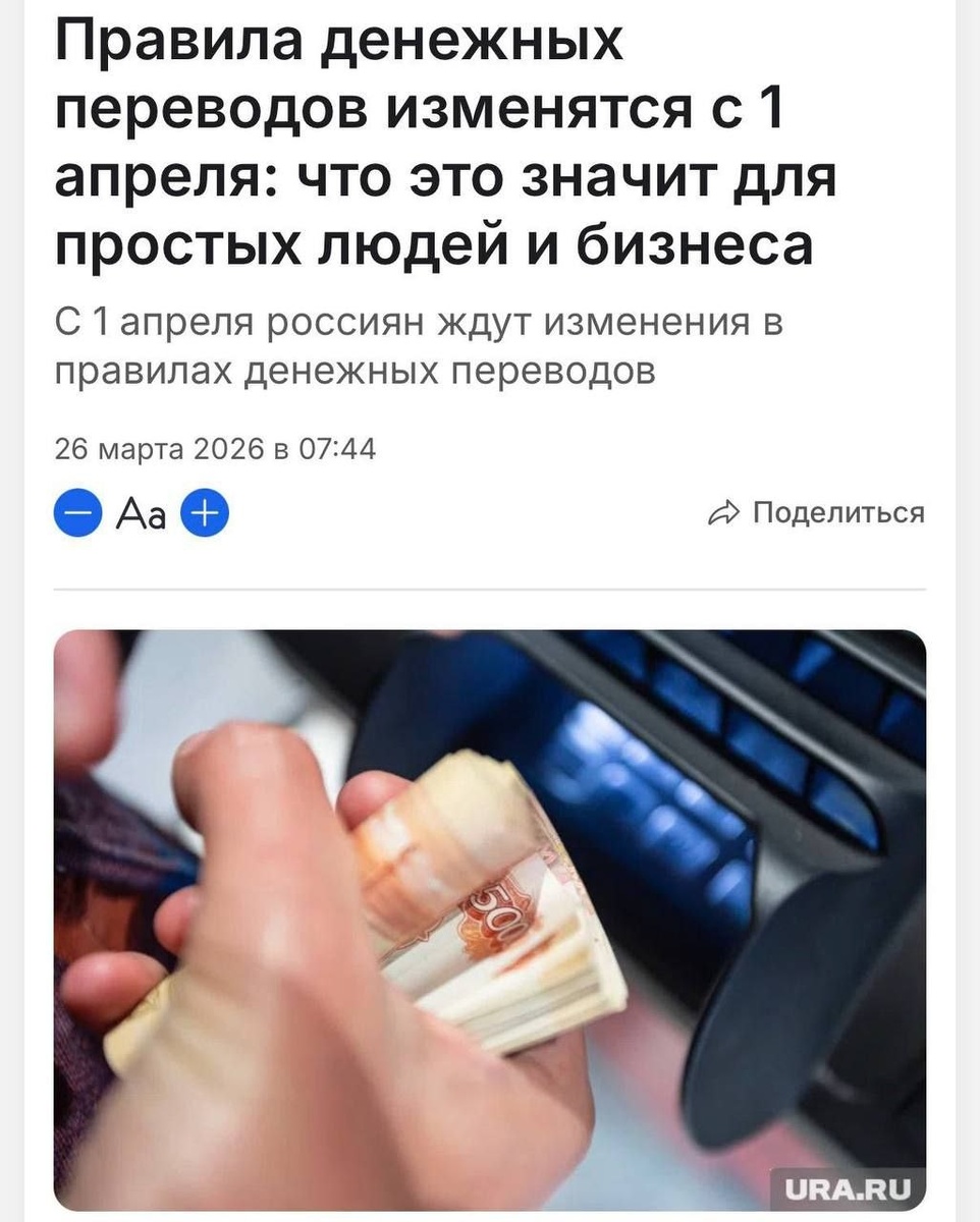 ⚡️В России закручивают гайки по денежным переводам — с 1 апреля в реквизитах придётся указывать полные ФИО, а в «назначении платежа» чётко