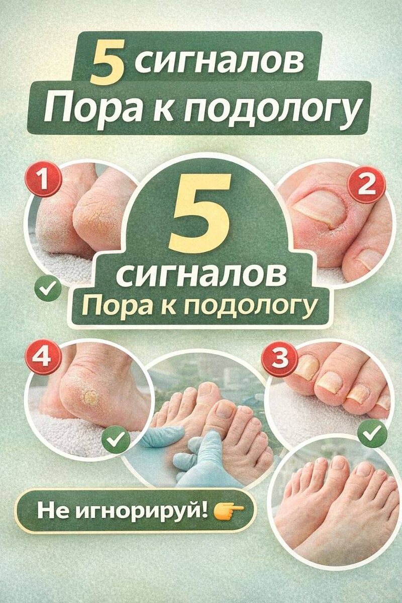 , чтобы обратиться к подологу Есть сигналы, которые нельзя игнорировать: 🔹️ трещины и сухость 🔹️ вросший ноготь 🔹️ мозоли и натоптыши 🔹️ изменение ногтей 🔹️ диабет Это не просто “эстетика” а вопросы здоровья Чем раньше начать — тем проще решить ✔️Если узнали себя — можно посмотреть подробнее здесь: http://vk.com/irinapodocentr_ptg