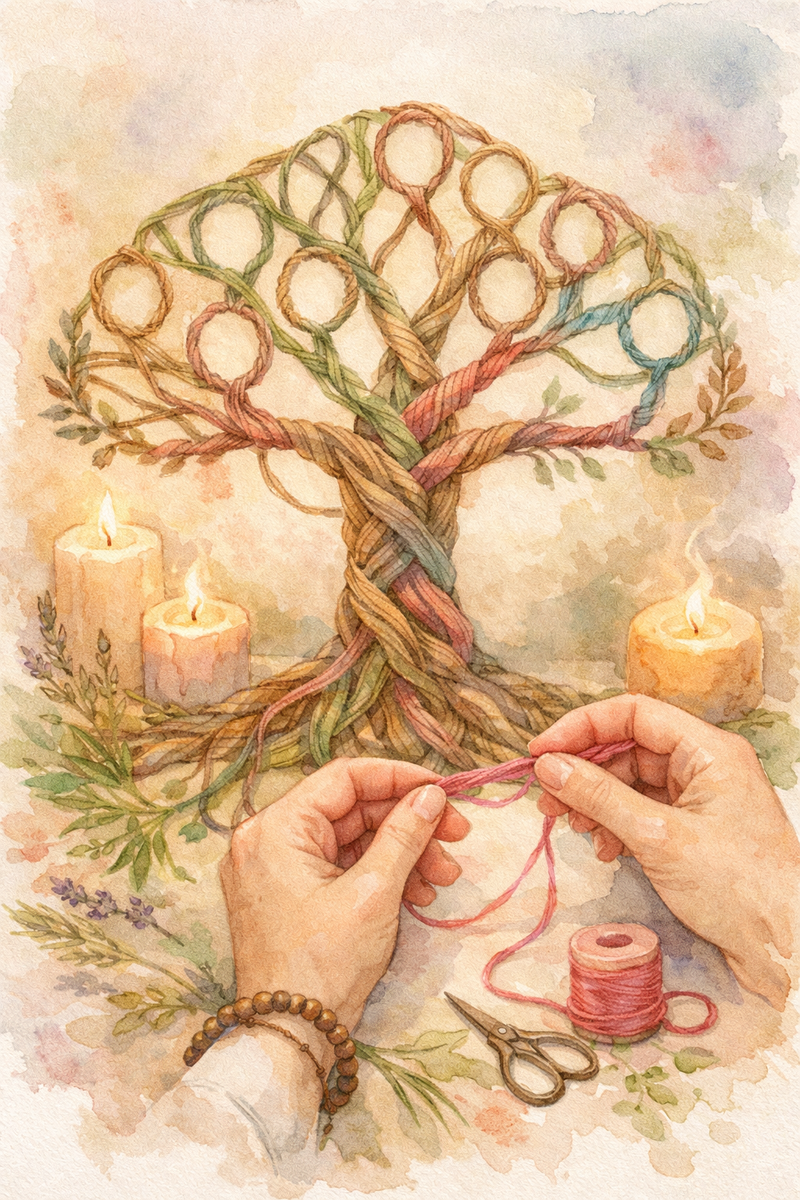 Когда человек прикасается к родовому дереву, он входит в очень глубокие слои. Это работает даже глубже, чем если бы он начал ходить на расстановки. Почему? Потому что расстановки — это работа с конкретными историями. А в роду — миллионы предков, миллионы историй, миллионы сценариев. Туда можно ходить годами, разбирать одну тему за другой, и всё равно останется что-то, что не увидели. А родовое дерево — оно уникально. Оно позволяет войти в контакт со всей системой сразу. Не через голову, не через анализ, а через руки, через нити, через принятие. Родовое дерево нельзя сплести «быстро». У него свой ритм. Я помню, как плела дерево для дочери. Засеяла поле — и всё. Полгода я не могла приступить даже к тому, чтобы просто поставить предков седьмого поколения. Не говоря уже о самом плетении. Я ждала. Я не форсировала. Я просто знала: время ещё не пришло. А потом, в какой-то момент, я села и за два часа всё доделала. Легко. Без напряжения. Потому что пришло время. У каждого дерева свой срок. Ка