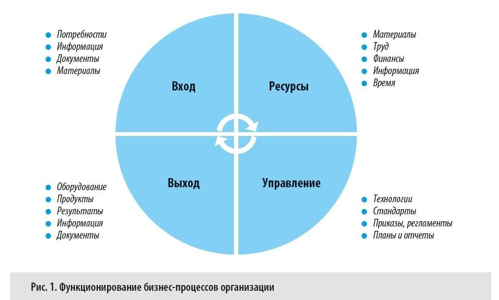 ? Каждый бизнес-процесс — это несколько взаимосвязанных процедур/ра-бот/действий, которые связаны одной общей целью в рамках текущей деятельности компании. Отличительным признаком бизнес-процесса является преобразование различного рода входящих ресурсов (товарно-материальных ценностей, труда, информации, технологий и т. п.) в какой-либо продукт/результат, имеющий ценность для его потребителя. На рисунке графически представлена типовая схема функционирования каждого бизнес-процесса компании.