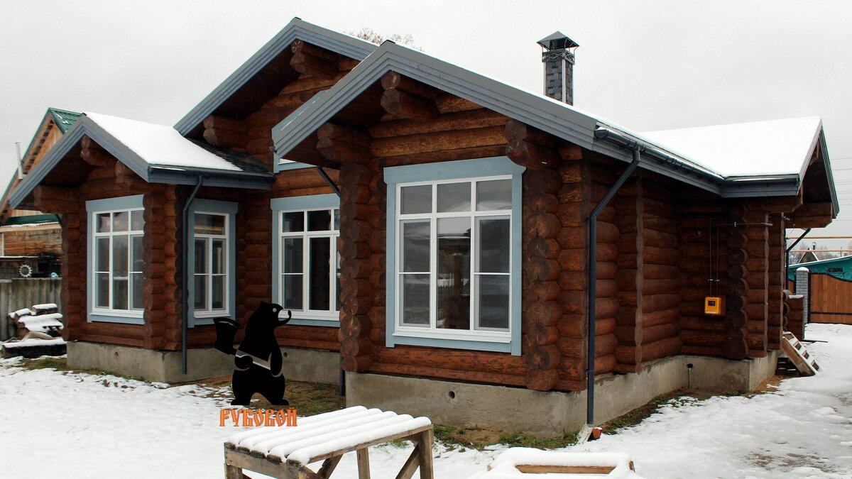 Черновую крышу, сделанную на первоначальном этапе общестроительных работ из-за ожидания усадочных процессов, переделали в чистовую (мягкая кровля) с монтажом доборных элементов и обходом печной каминной трубы. Мягкая кровля в части гидроизоляции - отличный выбор при наличии ендов (схождения скатов навстречу друг к другу) и примыканий к бревенчатым стенам.