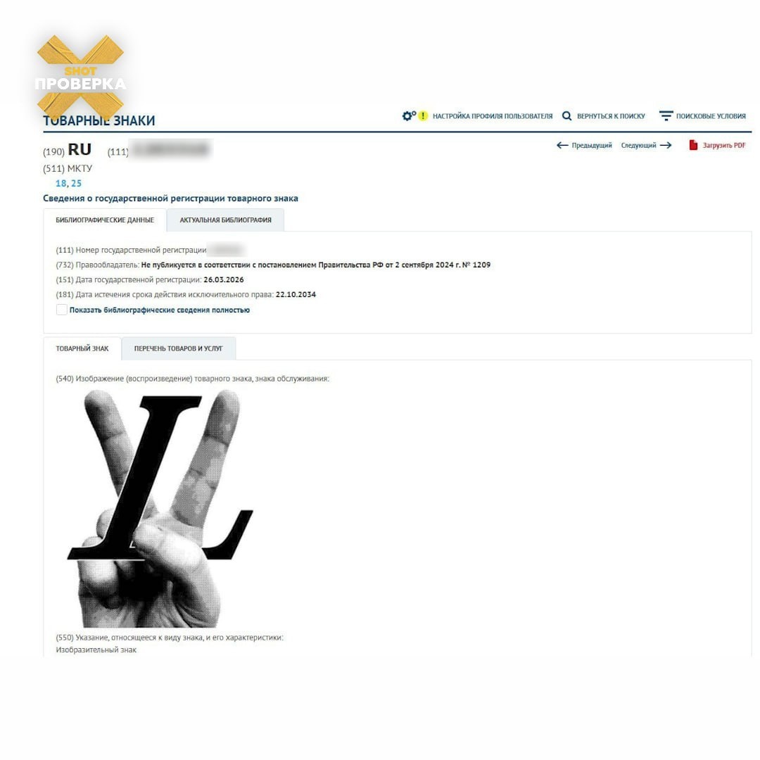 Как выяснила SHOT ПРОВЕРКА, сегодня бренд оформил в Роспатенте сразу несколько элементов фирменного стиля: две канвы, вариацию логотипа LV с рукой и фирменную печать Louis Vuitton Trunks & Bags. Ранее компания «Луи Ви» уже регистрировала отдельные товарные знаки, однако этот пакет — один из самых крупных за последнее время. При этом официально о возвращении бренд пока не заявлял: после ухода в марте 2022 года бутики Louis Vuitton в стране остаются закрытыми, а продукция доступна только через байеров и параллельный импорт. 🤩 Не грузятся файлы? Подписывайся на SHOT ПРОВЕРКУ в MAX