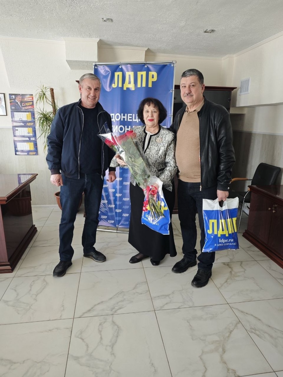 ☄️💐Вчера депутаты Енакиевского городского совета от ЛДПР Сергей Быковский и Сергей Аксенков поздравили с днём рождения Валентину Андреевну