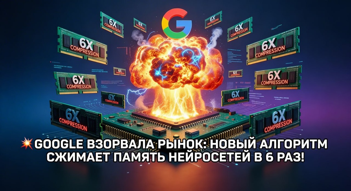 💥 Google взорвала рынок: новый алгоритм сжимает память нейросетей в 6 раз