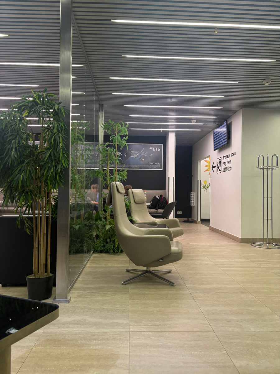 Бизнес зал для пассажиров международный рейсов находится на втором этаже в зоне вылета, после прохождения паспортного контроля и досмотра. Зал достаточно просторный, много мест отдыха, различных кресел, обычных столов и барная стойка. Имеется детская игровая комната Выбор питания не очень большой, но каждый найдет, чем перекусить. Закуски в виде салатов и нарезанных овощей, оливки, сендвичи. Из горячего были суп, наггетсы, рис, брокколи и цветная капуста, фаршированные перцы, пирожки. А также: кофемашина, чай, печенье, пирожное, йогурты, яблоки. Снеки: чипсы, сухарики, сушки. Из напитков: вода с газом и без, сок яблочный и яблоко-персик, газировки, пиво Балтика 3, 7, 8, сидр и вино белое/красное в свободном доступе в неограниченном количестве))) Подводя итог, неплохой комфортный зал, чтобы скрасить ожидание своего рейса. Всем путешествий!