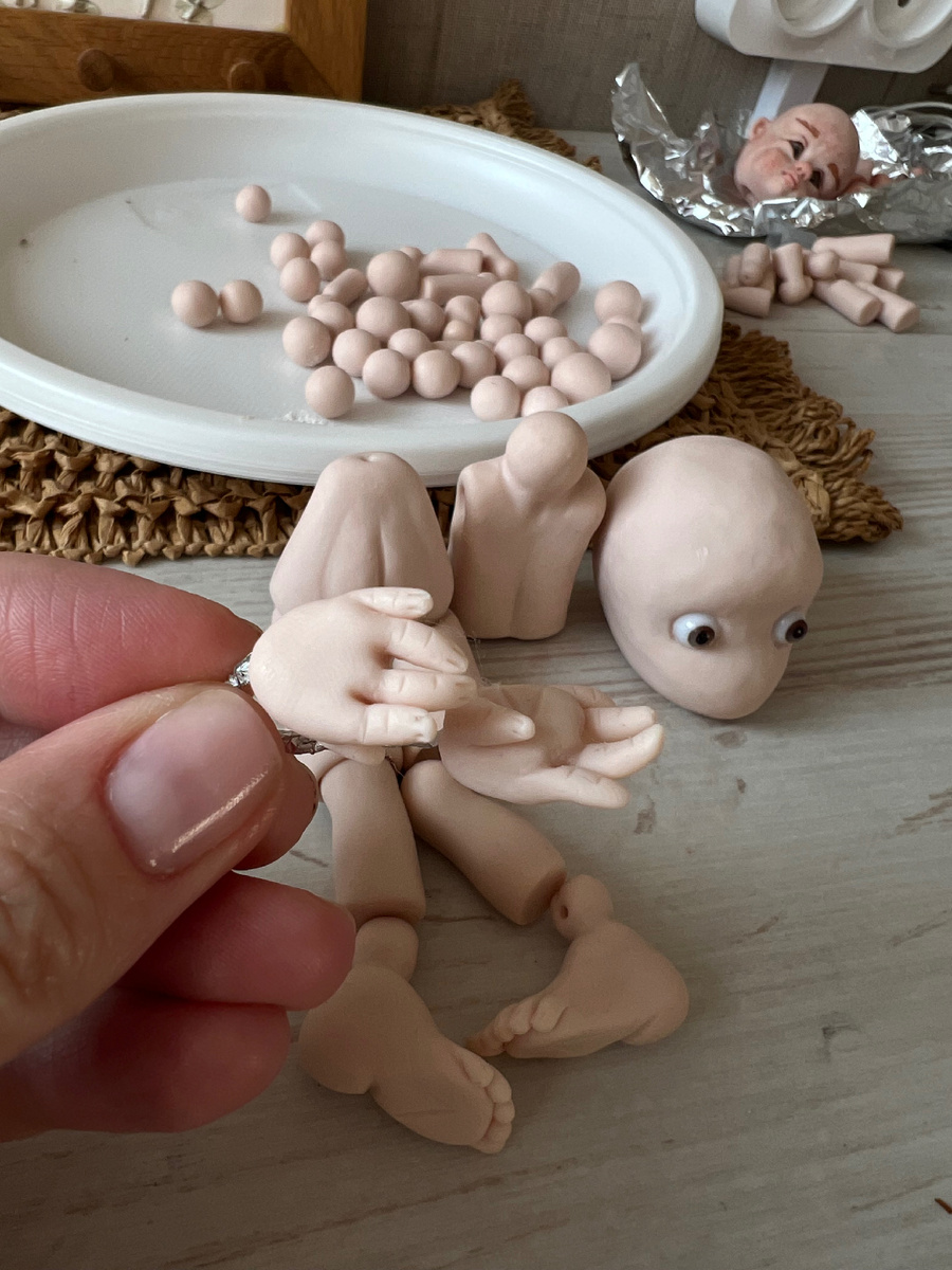 Я уже лепила кисти раньше. Честно скажу: получалось не всегда. В первой кукле пальцы были как сосиски. Во второй — как маленькие червячки. В третьей — уже почти пальцы, но всё равно кривые. И вот сейчас я подхожу к этому этапу снова, и внутри всё трясётся.