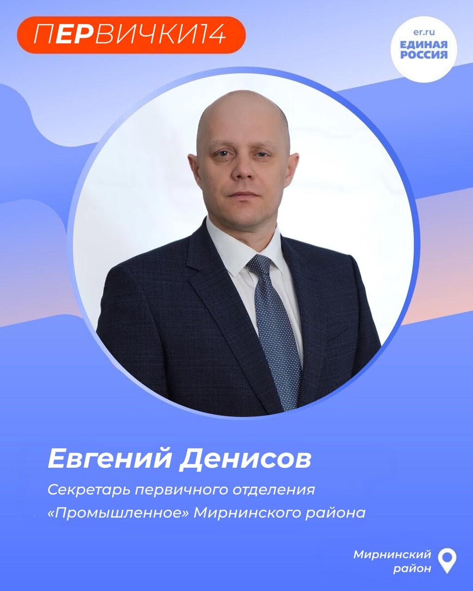 🐻❄️ Секретарем первичного отделения «Промышленное» Мирнинского района с 2024 является Евгений Денисов