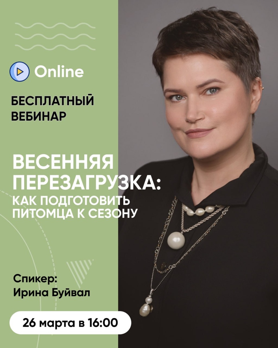 Уже сегодня в 16:00 БЕСПЛАТНЫЙ вебинар «Весенняя перезагрузка: как подготовить питомца к сезону