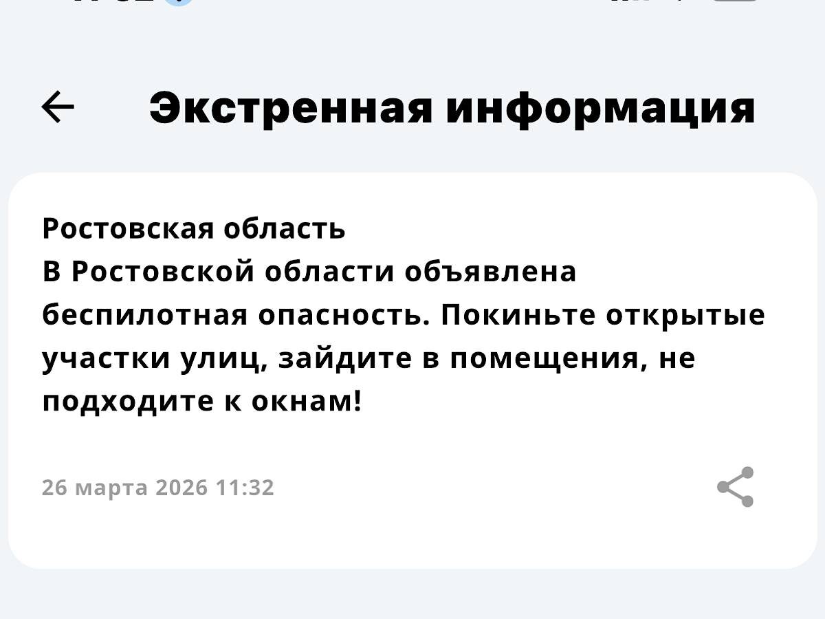 Беспилотная опасность объявлена в Ростовской области