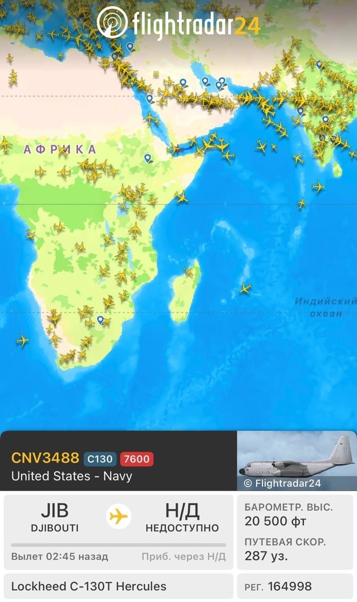 Военно-транспортный самолет C-130T ВМС США подал сигнал бедствия в районе Джибути