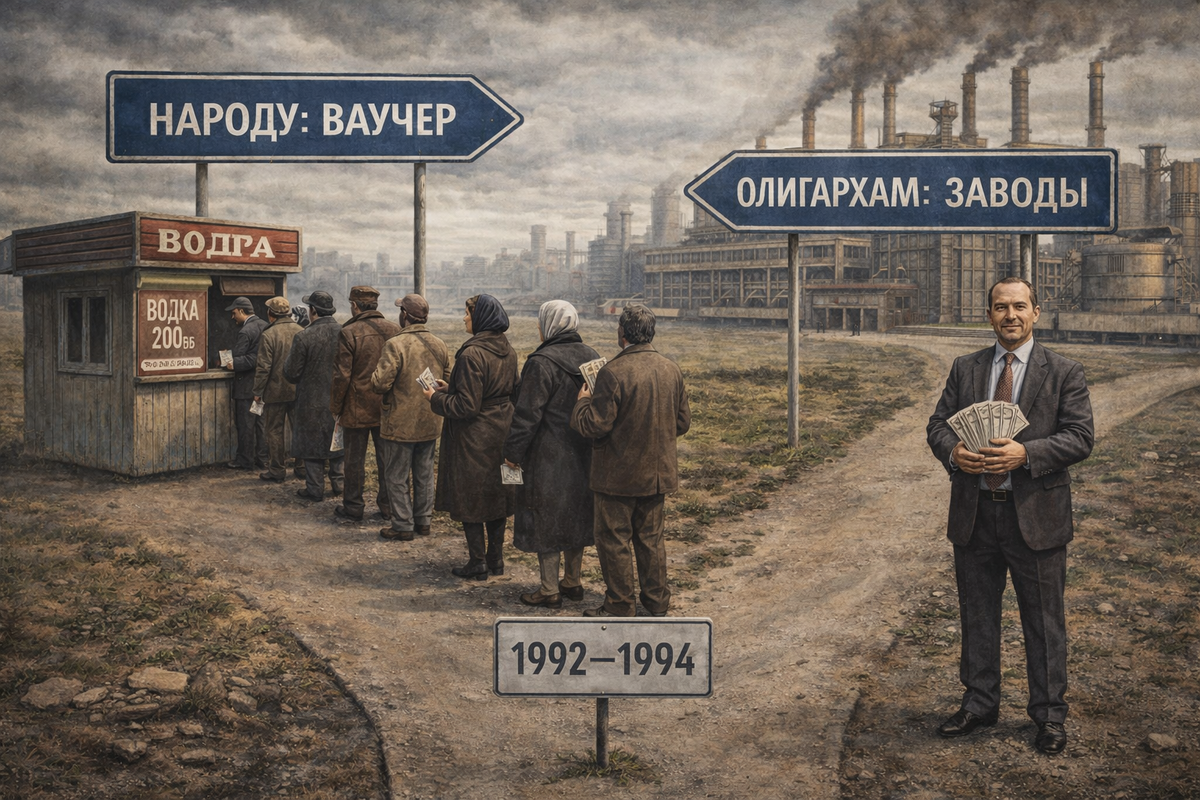 В 2026 году в России всё ещё обсуждают ваучерную приватизацию. Одни считают её неизбежным злом, другие — преступлением против народа. Третьи просто не помнят. А те, кто помнят, до сих пор не могут понять: как так вышло, что заводы, которые они строили, вдруг стали не их?