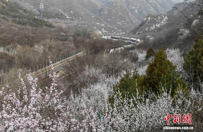 На днях на участке Цзюйюнгуань Великой Китайской стены в Пекине зацвели горные цветы. Пассажирские поезда проходят у подножия стены, словно двигаясь сквозь цветочное море.