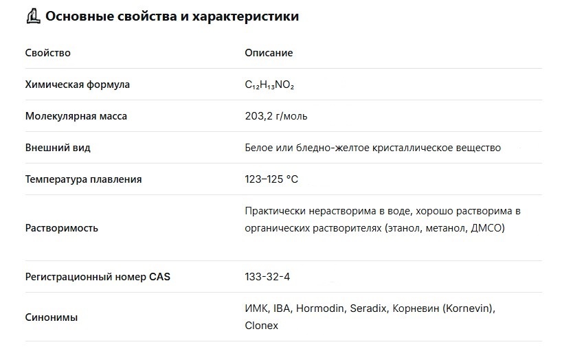 Индолилмасляная кислота (ИМК) — это широко используемый в сельском хозяйстве и садоводстве фитогормон, относящийся к классу ауксинов. Основное его назначение — стимуляция корнеобразования, то есть ускорение роста и развития корневой системы у черенков и саженцев. Ниже приведены ключевые характеристики и особенности применения этого вещества. Индолилмасляная кислота работает как стимулятор корнеобразования. Считается, что в клетках растения она превращается в более простой ауксин — индолил-3-уксусную кислоту (ИУК), которая и запускает процессы деления клеток и формирования корней. ИМК используется в двух основных сферах: Индолилмасляная кислота является одним из самых эффективных и распространенных стимуляторов корнеобразования. Ее применение оправдано как в промышленных масштабах для укоренения плодовых и декоративных культур, так и в частных хозяйствах для повышения приживаемости черенков.