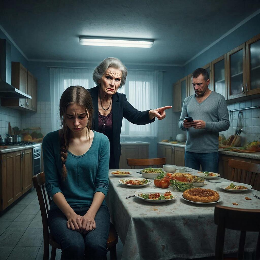 Квартира пахла мандаринами и горелой мишурой. Оливье уже застыл в хрустальной салатнице, шампанское давно выдохлось в бокалах, а на кухне всё ещё горела верхняя лампа, хотя за окном давно наступила глубокая новогодняя ночь. Жанна сидела на краю стула, стараясь занимать как можно меньше места, пока её свекровь, Алла Викторовна, вещала за праздничным столом.