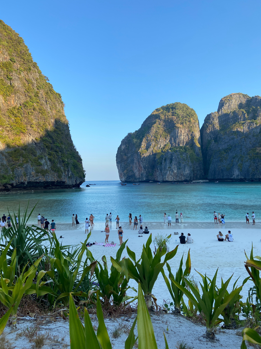 Первой по маршруту была бухта Майя Бэй - здесь снимали фильм «Пляж» с Леонардо Ди Каприо. Я перед поездкой пересмотрела этот фильм и мне очень хотелось сюда. Были мы не первые, но в пятерку входили.