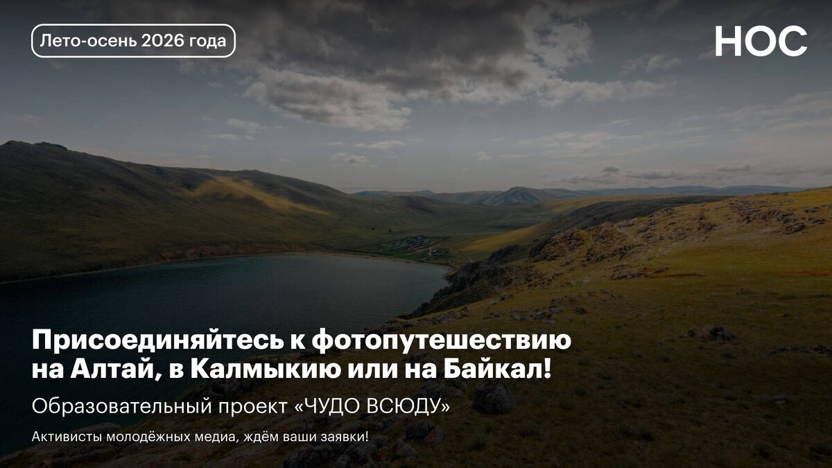 ! ✈️ Образовательный проект «ЧУДО ВСЮДУ» впервые объединит добровольцев, готовых создавать медиаархивы для особо охраняемых природных территорий. Участники поедут на Алтай, в Калмыкию и на Байкал, где под руководством профессиональных наставников будут учиться снимать дикую природу Экологические экспедиции пройдут в рамках бесплатной Школы фотографа дикой природы — летом и осенью 2026 года 💌 Ищем талантливого медийщика, который точно отправится в поездку! До 20 апреля выбирайте одно из трёх направлений, подавайте заявку и отправляйте в бот НОС ФИО, регион проживания (дорога до Элисты, Иркутска или Горно-Алтайска — за счёт участника), вуз и ссылку на фотопортфолио #Медийщикам ➡️ НОС: Телеграм | ВКонтакте | МАХ