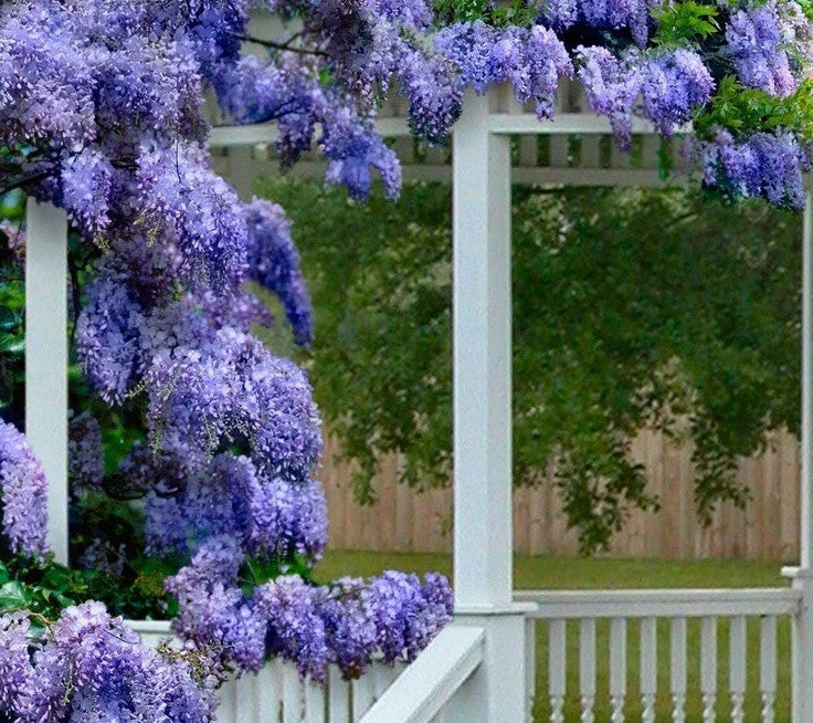 Долгое время я была уверена, что глициния — это «не про нас». Красивые каскады цветущих кистей казались чем-то из южных садов, где нет ни возвратных заморозков, ни затяжной зимы. Но всё изменилось, когда в саду появилась глициния макростахия Блю Мун. И здесь важно сразу сказать главное: в холодных регионах речь идёт не о «глицинии в целом», а только об одном виде — глицинии макростахия. Китайская глициния, которая чаще всего встречается в продаже, зимует плохо и в большинстве случаев не выдерживает наших условий. Это ключевой момент, который часто упускают. Глициния китайская красивая, быстро растёт, но она рассчитана на мягкий климат. В условиях средней полосы она подмерзает, не восстанавливается и часто просто выпадает. Глициния макростахия — совсем другая история. Этот вид изначально более устойчив к холодам. Сорт Блю Мун выдерживает морозы до −35 °C и относится к 4 зоне морозостойкости. Кроме того, она цветёт на побегах текущего года. Даже если часть побегов пострадала зимой, расте