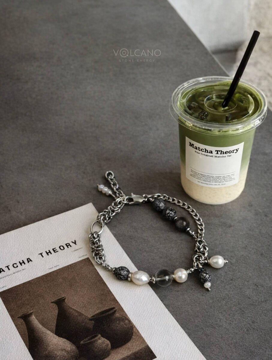 Внешне - строгий, почти аскетичный. Но в его конструкции заложена свобода: сочетание фактур, материалов и деталей формирует сложный, многослойный образ, который хочется рассматривать и ощущать на запястье. Это сочетание интеллекта, глубины и безупречного вкуса. ____ ▪️Браслет 3800₽ натуральный жемчуг / горный хрусталь / лава / обсидиан / сталь ▪️Серьги 2200₽ натуральный жемчуг / кристалл ✔️фурнитура не темнеет