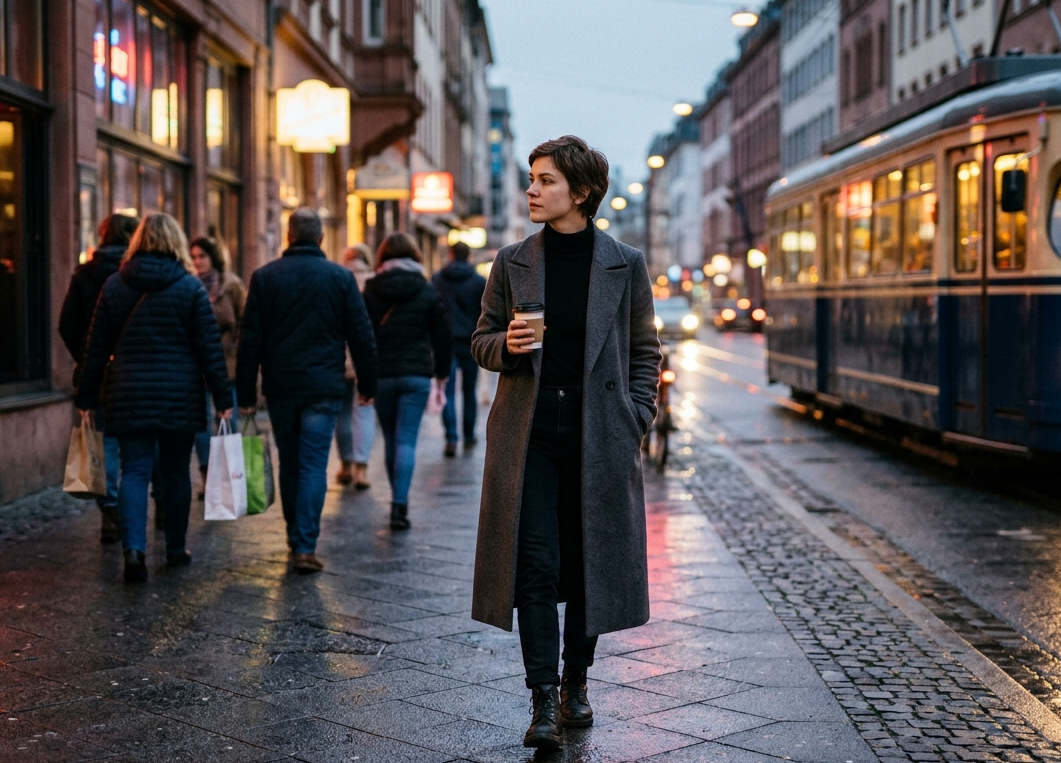 Таня выходит из офисного здания, когда сумерки уже плотно окутали город. Она смотрит на часы — 20:30. Пятница. Коллеги, смеясь и шутя, уже разбрелись по барам, обсуждая планы на выходные. Таня чувствует, как свинцовая усталость после тяжелой недели давит на плечи. У нее нет сил на шумные компании, на натянутые улыбки, на разговоры ни о чем. Ей хочется уединения, но не дома в четырех стенах. Ей хочется быть одной, но среди людей. Быть невидимой, но чувствовать пульс города. Она заходит в кофейню на углу, берет стаканчик горячего латте навынос и просто идет. Без наушников, без цели. Ноги сами ведут её по привычному маршруту, но сегодня всё кажется другим. Таня погружается в город, как в огромную световую инсталляцию. Пятничный вечер превращает мегаполис в яркое, хаотичное шоу, которое она созерцает со стороны. Таня останавливается у витрины букинистического магазина, просто чтобы посмотреть на корешки книг. В этот момент она не «сотрудник», не «клиент» и не «пользователь». Она — наблюдат