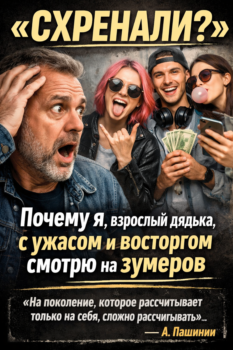 Знаете, я обожаю зумеров. Серьезно, эти ребята — лучшее, что могло случиться с этой страной за последние 30 лет. Наконец-то выросло поколение без ошейника. Свободные люди, которые смотрят тебе в глаза и с искренним недоумением выдают главный вопрос нашей эпохи: «СХРЕНАЛИ?».