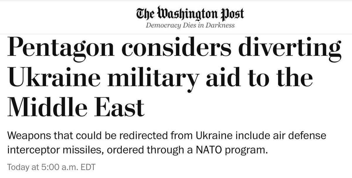 Пентагон рассматривает возможность перенаправить часть вооружений, предназначенных для зеленского, на Ближний Восток, сообщает The