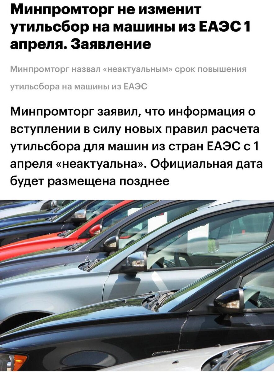 ! Новые правила расчета утильсбора от 1 апреля - отменяются! Предварительно переносятся на 1 декабря Сейчас отличное время для заказа автомобиля 📲Планируете покупку? Пишите менеджеру — пришлем детали и подберём лучшее под ваш запрос. 😈 Подписаться