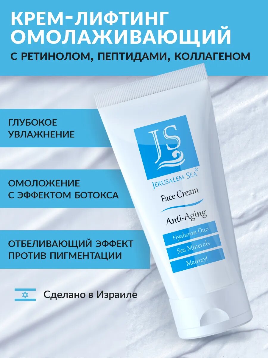 Ночной антивозрастной увлажняющий и восстанавливающий крем для лица Jerusalem Sea с аминокислотами, маслом асаи, ресвератролом и витаминами и минералами питает, восстанавливает, оказывает лифтинг-эффект, тонизирует и освежает, а также способствует уменьшению отечности.