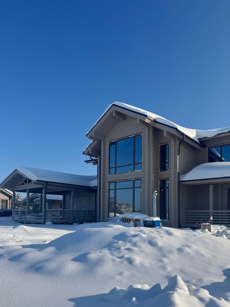 В следующем посте покажем, как дом выглядит сейчас — с оформленными окнами, почти в финале. И, конечно, тот самый вид на гольф-поле, укрытое снежным одеялом.