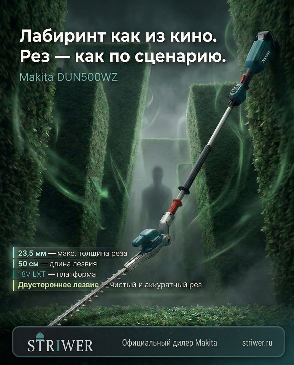 🌿 Лабиринт как из кино. Рез — как по сценарию. Если нужен аккуратный инструмент для подрезки формы, работы по высоте и чистого реза — обратите внимание на Makita DUN500WZ. 🔑 Коротко по DUN500WZ: • 23,5 мм — макс. толщина реза • 50 см — длина лезвия • 18V LXT — работа в платформе Makita • Двустороннее лезвие — чистый и аккуратный рез #STRIWER #Makita #MakitaDUN500WZ #кусторез #садовыйинструмент #LXT #инструментMakita #уходзаучастком 👉 striwer.ru 📞 8 499 350 87 47 📩 info@striwer.ru